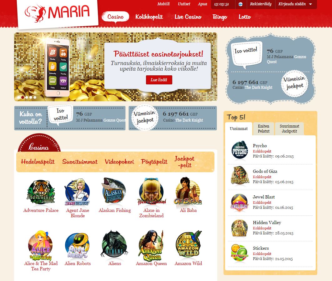 Maria Casino Norge tilbyr en dynamisk online spillplattform som inkluderer et bredt utvalg av spill med raske og sikre betalingsløsninger. Enten du liker spilleautomater, live casinospill eller bingo, gir plattformen en smidig og engasjerende opplevelse for alle typer spillere.